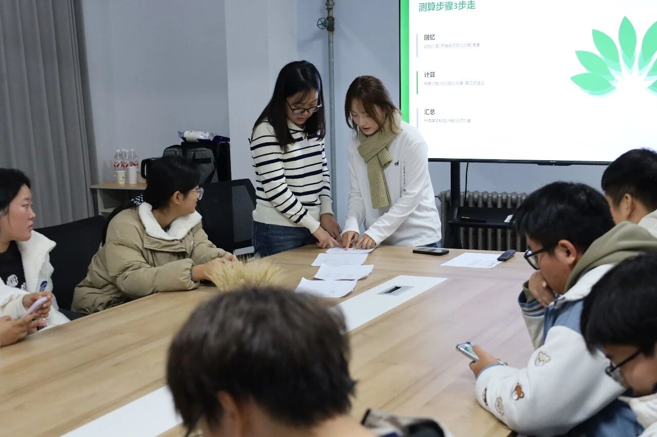 现场设置4-5人分组实战环节,组织师生共同完成周碳足迹测算,在实践中深化对碳排放量的认知。同时针对外卖、自驾等高频高碳场景,拆解实用减碳方案,呼吁大家从日常选择入手,主动减少 “环境负债”。