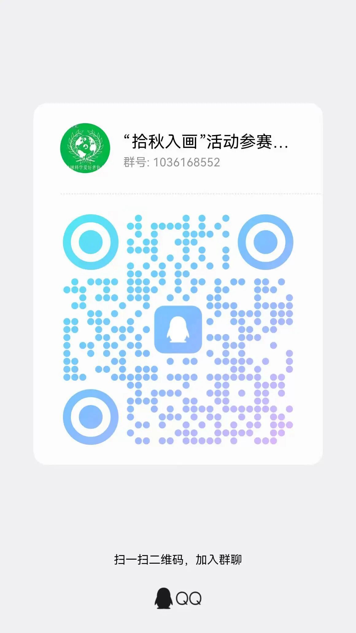 扫描下方二维码/搜索QQ群号1036168552 加入报名群,作品拍照提交给群内管理员即可(提交时备注“学号+姓名”)