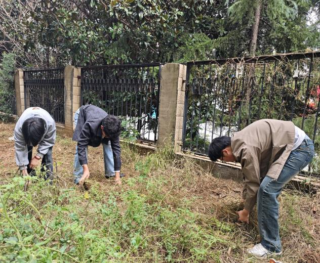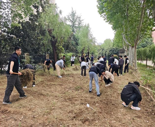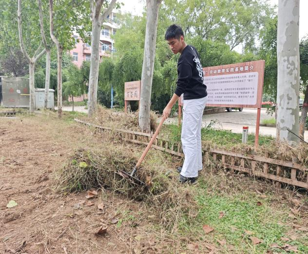 活动过程中,同学们在孙中奎老师的指导下,分成若干小组,以饱满的热情投入到劳动实践中。同学们手持锄头、铁锹、扫帚等工具,清除杂草、规整植株、打扫落叶、翻土起垄,经过一个多小时的辛勤劳动,劳动基地的面貌焕然一新,为接下来秋播秋种做好充分准备。