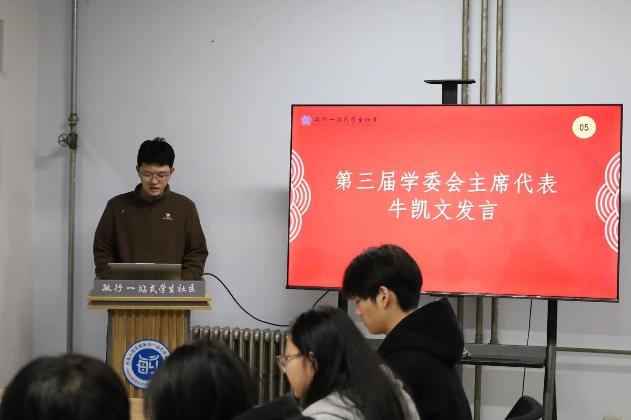 会上,第二届学委会主席团代表王文硕上台作工作汇报。他从活动开展、服务保障、团队建设等多个维度,全面复盘了过去一年学委会的工作成果,细数了全体成员在社区建设中的辛勤付出与丰硕收获。那些并肩奋斗的日夜、那些服务同学的瞬间,都成为了社区发展中珍贵的印记,赢得了现场师生的一致认可。