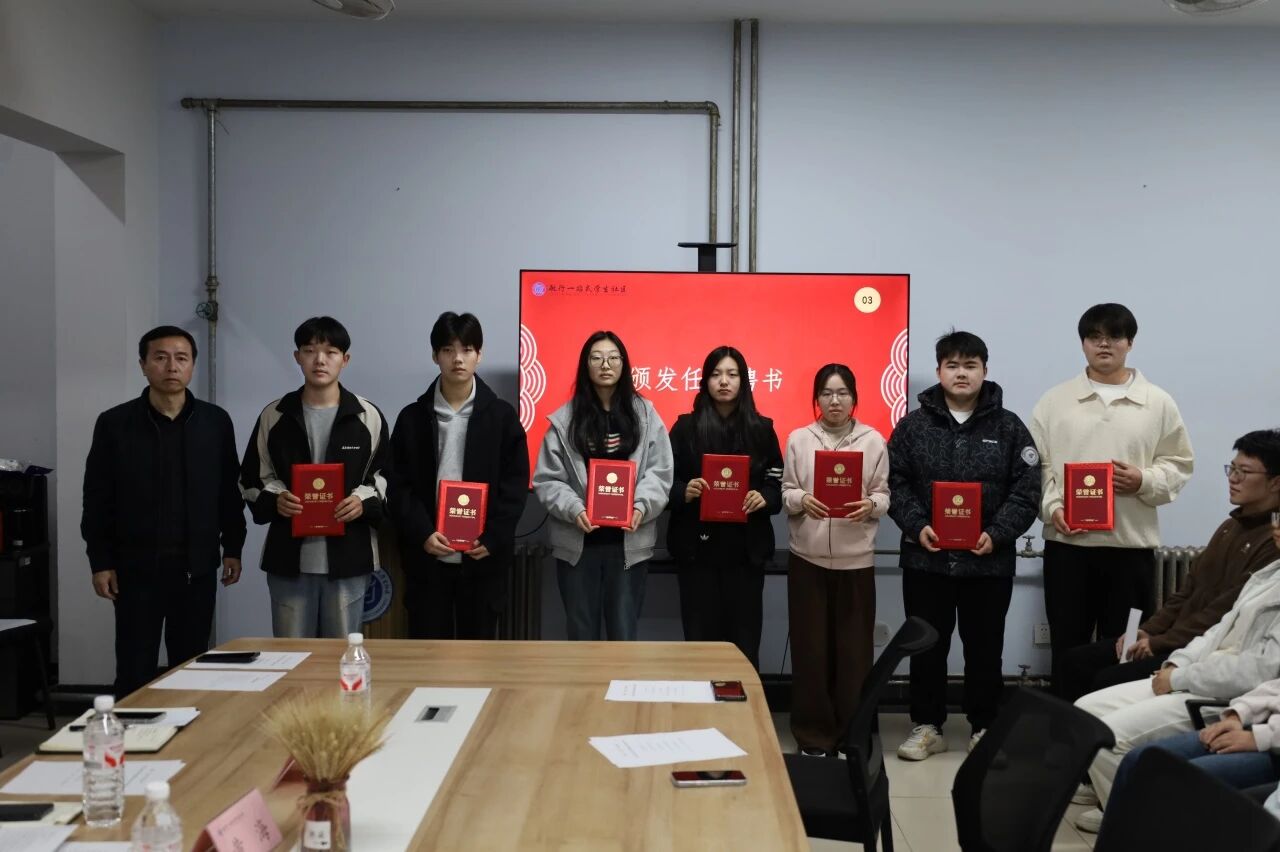 大会进入聘书颁发环节。当第二届学委会成员接过沉甸甸的聘书时,每一份聘书都承载着学校与社区的信任,更是对他们过去一年责任担当的最佳肯定。合影定格的瞬间,不仅是荣誉的见证,更是青春奋斗的纪念。